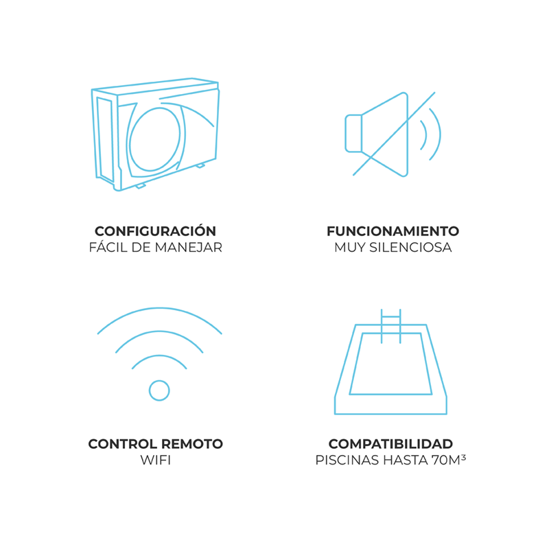 - Tamaño máximo de la piscina: 70 m³
