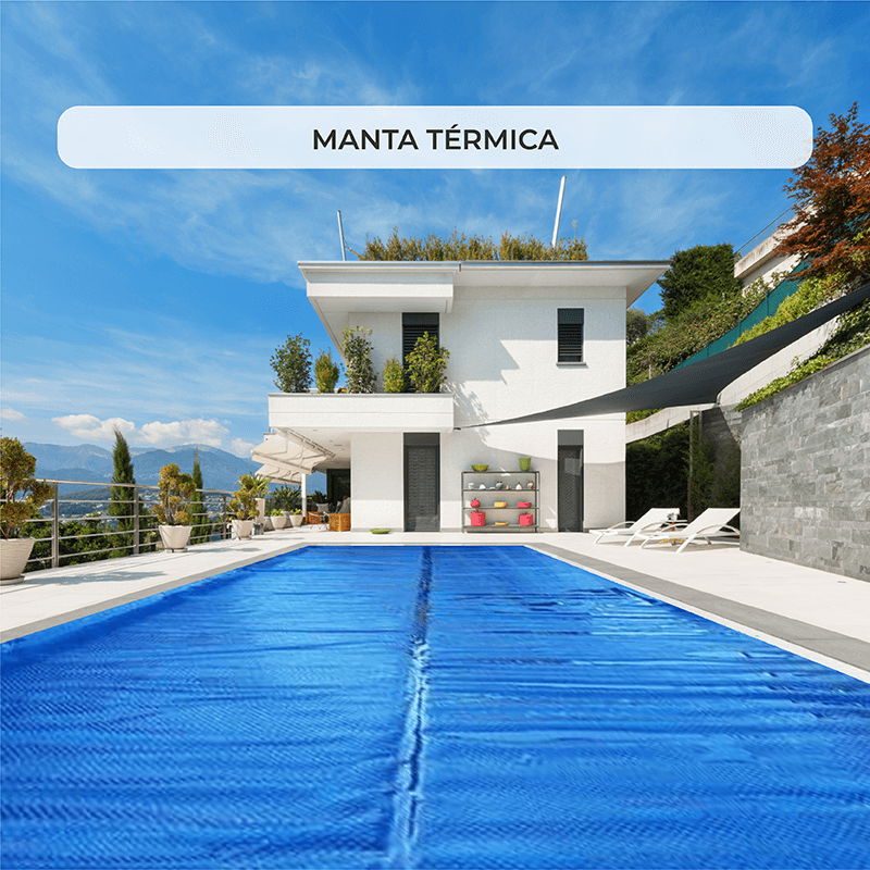 Una manta térmica sirve para mantener e incrementar la temperatura del agua durante la temporada de baño. Se trata de un cobertor de piscina para verano compuesto por dos láminas de polietileno que se extiende sobre la superficie de la piscina con las burbujas de aire colocadas hacia abajo para conseguir calentar el agua sin necesidad de emplear un sistema de calefacción. Entre sus ventajas destacan reducir el uso de productos químicos, evitar la evaporación del agua e impedir la caída de suciedad en el interior de la piscina.