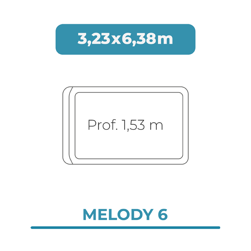El Cobertor para piscina 3,23 x 6,38 modelo Melody 6 es una lona para piscinas diseñada específicamente con las medidas para una piscina DTP o cualquier otra marca de las mismas dimensiones.