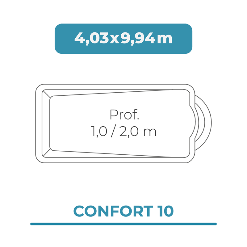 El Cobertor para piscina 4,03 x 9,94 modelo Confort 10 es una lona para piscinas diseñada específicamente con las medidas para una piscina DTP o cualquier otra marca de las mismas dimensiones.