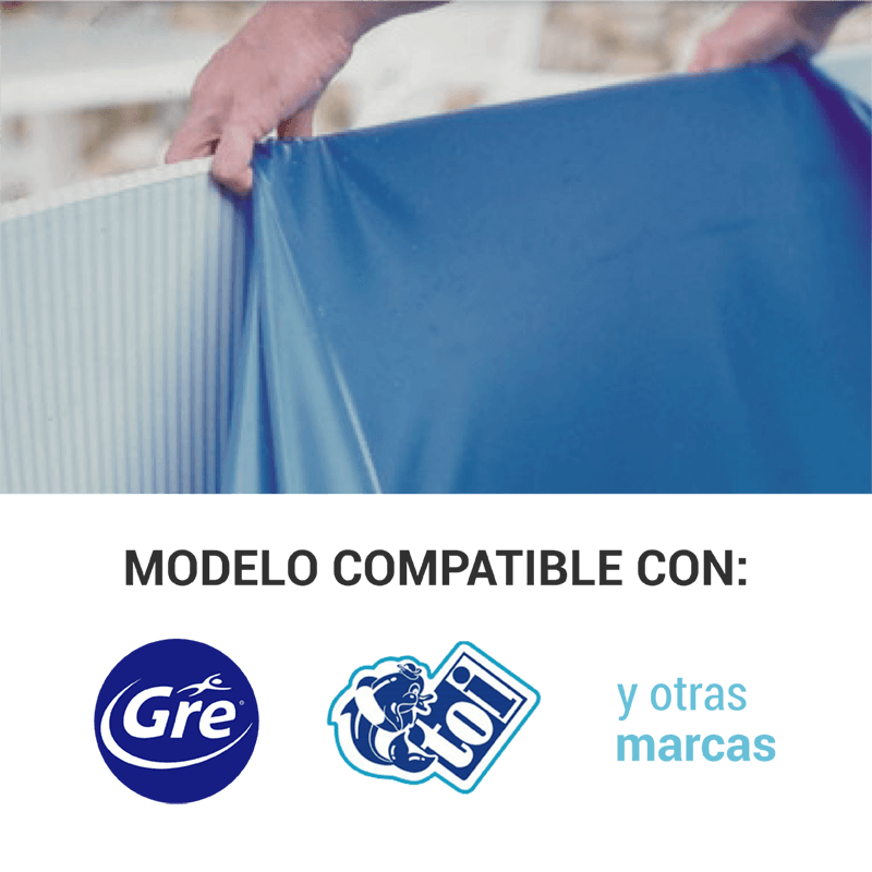 El liner para piscinas 350x90 Piscinas Redondas está fabricado en PVC de alta calidad. El material consta de un tratamiento fungicida y contra los rayos ultravioleta que garantiza la impermeabilidad del vaso de agua, además de una capa de laca para prolongar la vida útil del revestimiento.
