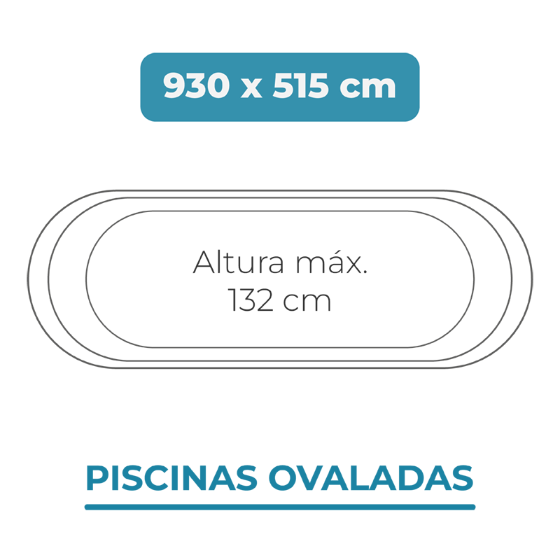 La instalación del liner para piscinas 930x515x132 Piscinas Ovaladas es sencilla pero requiere una colocación exacta, por lo que se recomienda realizarla un día soleado para evitar la formación de arrugas.