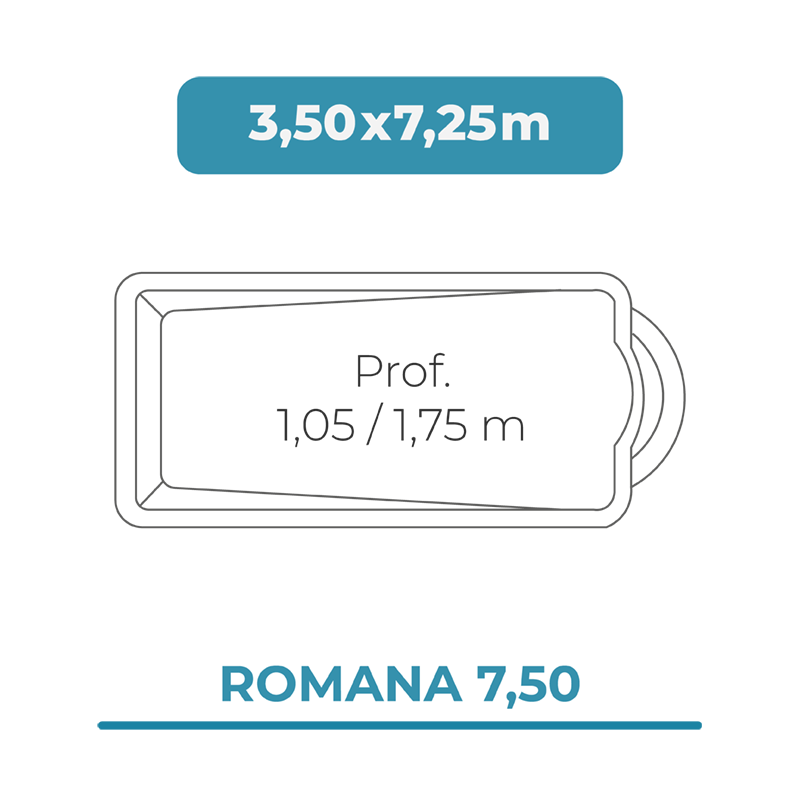 A cobertura para piscina 3,50 x 7,25 modelo Romana 7,50 é uma cobertura especificamente concebida com as medidas para uma piscina DTP ou qualquer outra marca com as mesmas dimensões.