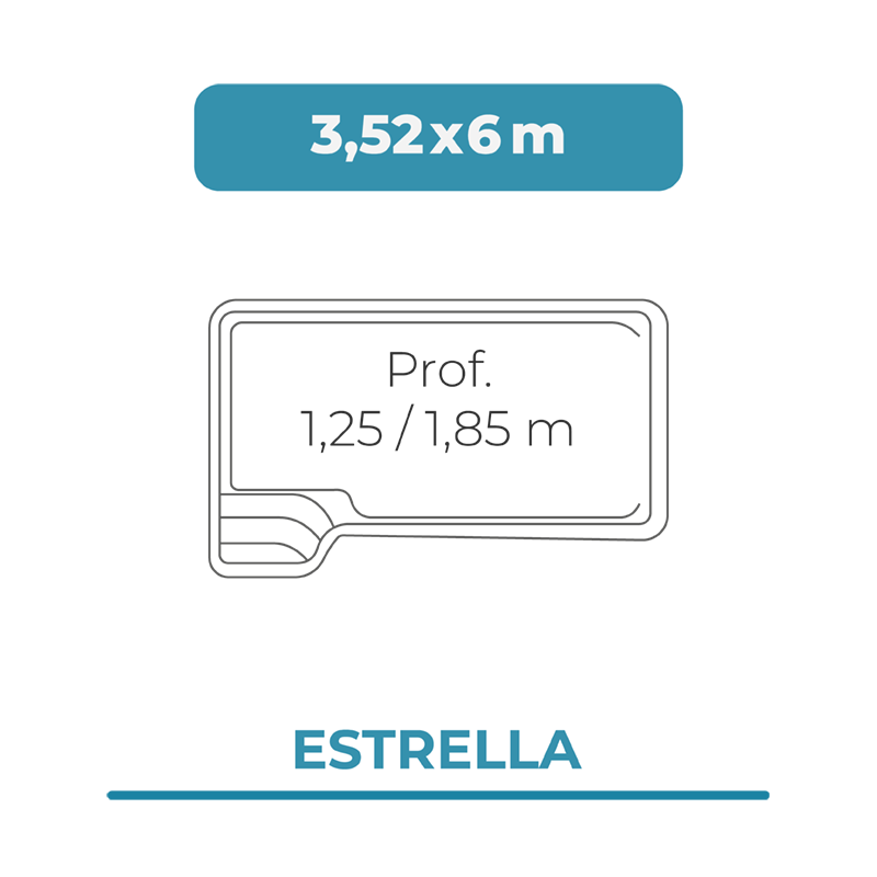 A cobertura para piscina 3,52 x 6 modelo Estrella é uma cobertura especificamente concebida com as medidas para uma piscina DTP ou qualquer outra marca com as mesmas dimensões.