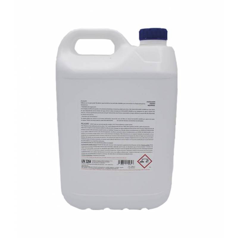 Produto líquido para o tratamento da água da piscina que age precipitando a matéria em suspensão sem alterar o pH da água.