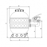 GRANADA GL é um filtro doméstico de válvula de 6 vias superior ou lateral, feito com polímero injetado, com base circular e boca superior de 180 mm de diâmetro.