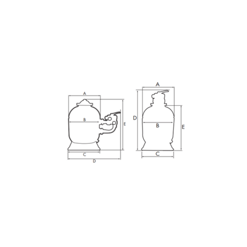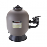 Filtro de areia laminado projetado para piscinas de médio e grande porte. Fabricado em resina de poliéster e reforçado com fibra de vidro, resiste à corrosão de produtos químicos e garante maior durabilidade. Tampa superior Ø300 injetada em polipropileno preto fechada com 8 parafusos e porcas de aço inoxidável com acabamento em ABS preto.