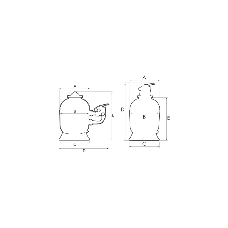 Filtro de areia laminado projetado para piscinas de médio e grande porte.