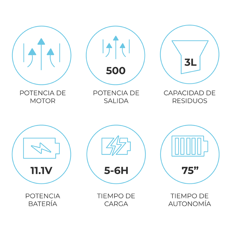 Este dispositivo, com um tempo de carregamento de 5 a 6 horas, direciona os resíduos através de canais laterais, onde se concentra o máximo poder de sucção. A sucção é constante e proporciona um resultado ótimo. A capacidade de filtragem é de 3 litros.