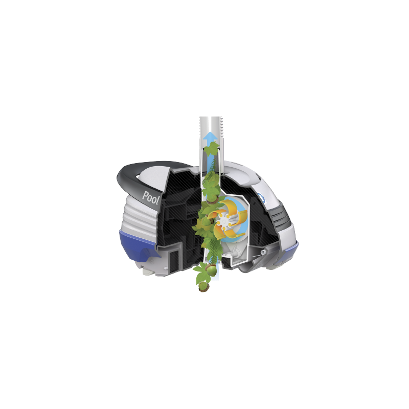 - Desenho hidrodinâmico único, para um movimento ilimitado à volta da piscina, o desenho das suas aletas permite-lhe melhorar a aspiração de todos os tipos de detritos.
